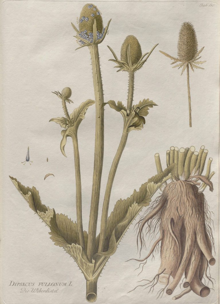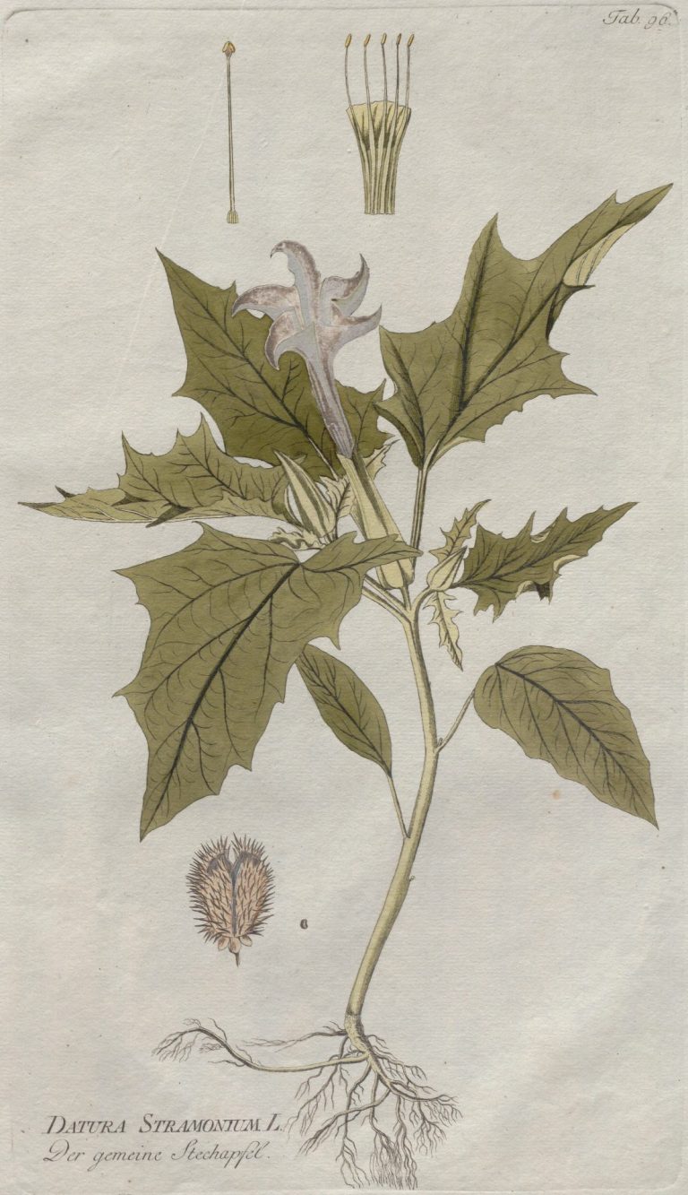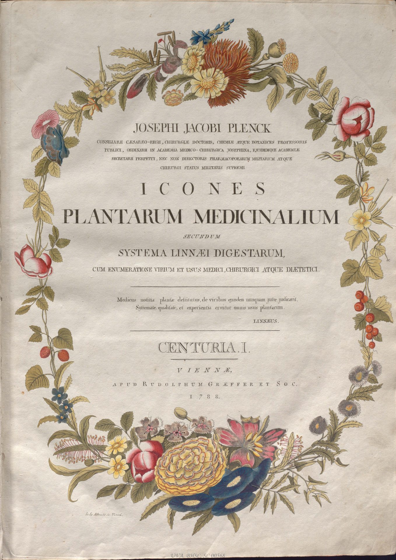 Los grabados de esta colección pertenecen al «Icones plantarum medicinalium», obra impresa en Viena (1788 – 1794) que consta de 6 volúmenes y contiene 758 grabados coloreados. En ella utiliza la clasificación de Linneo y su nomenclatura binomial para reproducir unas 800 plantas en grabados calcográficos con sus características físicas y farmacéuticas, olor, gusto, acción farmacológica y uso medicinal.