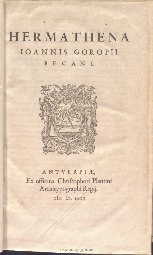 El flamenco Becanus, médico y erudito, dedicó parte de su vida al estudio de las lenguas y al desciframiento de su supuesta relación con los símbolos naturales y divinos, convencido de que el flamenco —y en especial el dialecto de Amberes— era la lengua primitiva de la humanidad.