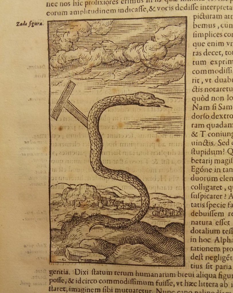 Entre los textos más curiosos de la literatura emblemática, empleando en el mismo la forma de jeróglífico, se encuentra  el texto de Johannes Goropius Becanus (1518–1572), titulado Opera Ioan. Goropii Becani: hactenus in lucem non edita, nempe Hermathena, Hieroglyphica, Vertumnus, Gallica, Francica, Hispanica, de la que la biblioteca histórica de la Universidad de Valladolid, conserva la edición de 1580 por Christophe Plantin.