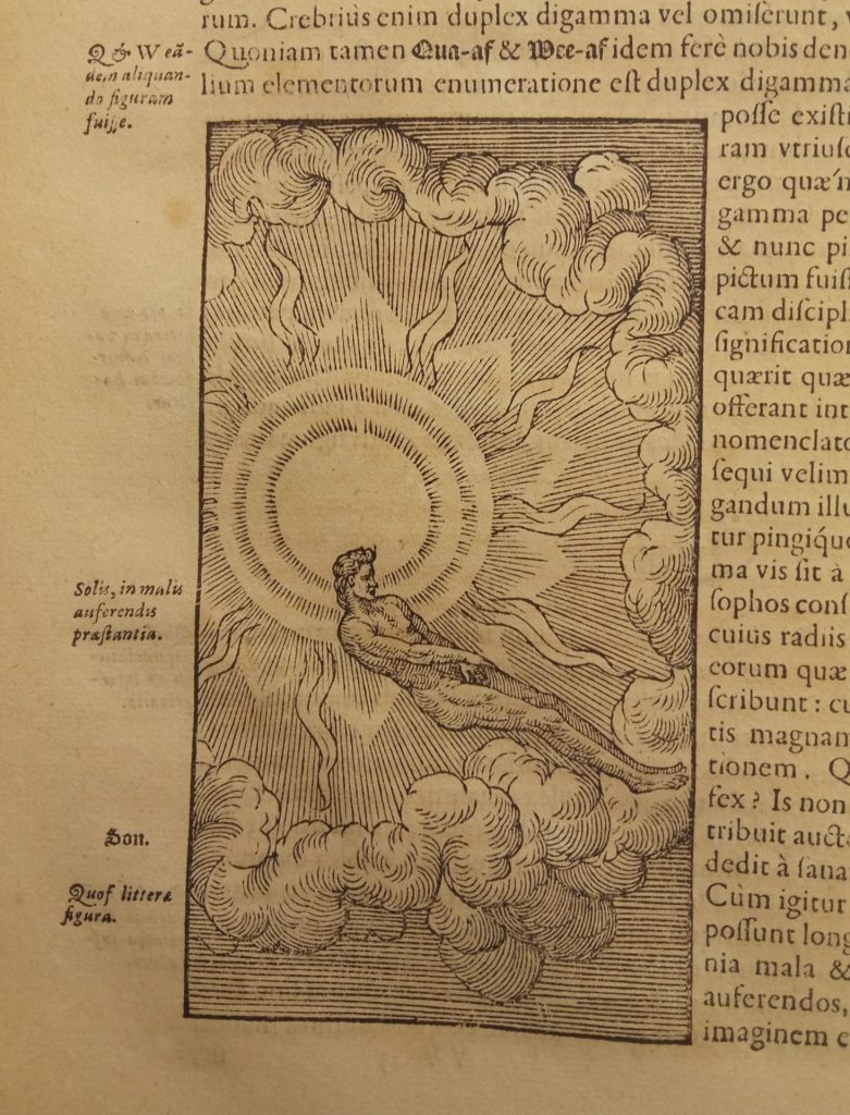 El volumen, impreso con la calidad característica de la Officina Plantiniana, destaca por su sobria elegancia tipográfica y su aparato iconográfico. Contiene un retrato grabado del autor, obra de Hieronimus Wierix, fechado en 1580, así como un conjunto de más de cuarenta xilografías alegóricas que acompañan el Hieroglyphica. Estas imágenes, representaciones de dioses egipcios, figuras naturales y símbolos morales, responden al gusto renacentista por la correspondencia entre imagen y concepto, y vinculan el texto de Becanus con la tradición emblemática europea.