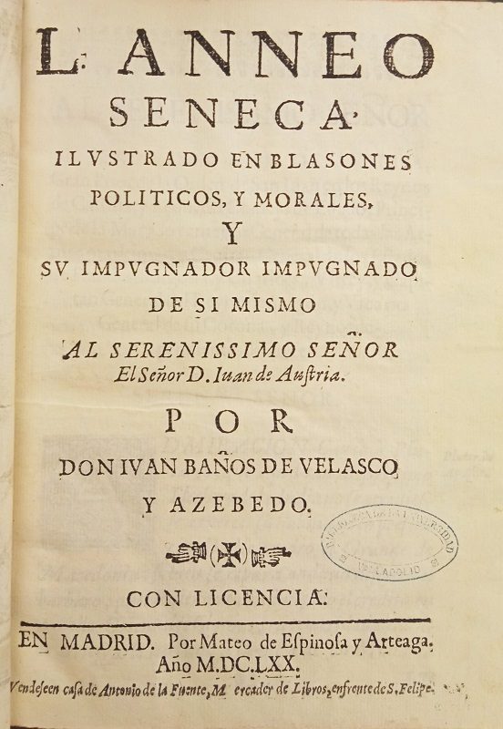 L. Anneo Séneca ilustrado en blasones políticos y morales, y su impugnador impugnado de sí mismo (Madrid, 1670) constituye un ejemplo singular de la literatura emblemática y moralista del Siglo de Oro. En esta obra, Juan Baños de Velasco y Acevedo combina la tradición humanista con la emblemática barroca, proponiendo un diálogo entre la filosofía estoica de Séneca y las preocupaciones políticas y éticas de la monarquía hispánica de finales del siglo XVII.