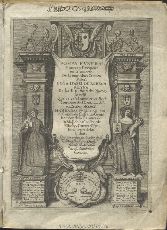 Título: Pompa funeral, honras y exequias en la muerte de ... Doña Isabel de Borbon, Reyna de las Españas y del Nuevo Mundo que se celebraron en el Real Convento de S. Geronimo de la villa de Madrid