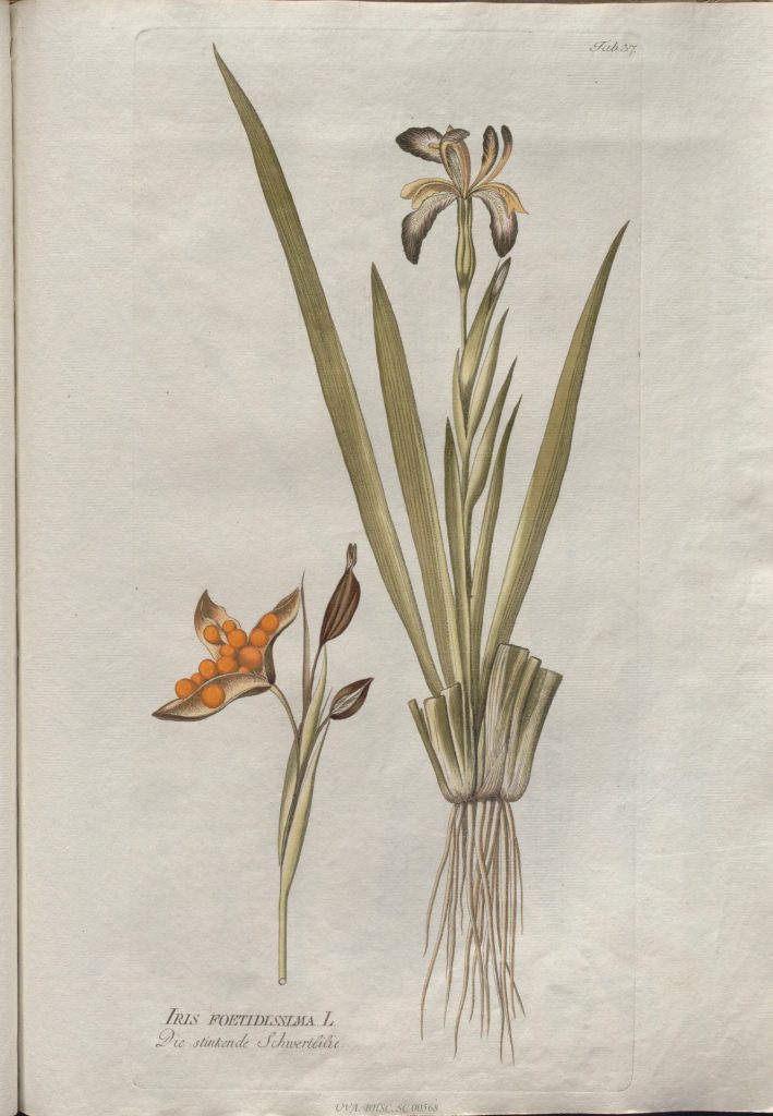 VIRTUS: “Narcótica, antiespasmódica, purgante; el polvo excita estornudo.” USUS: “En escrofulosas y serpiginas (dermatosis que ‘se extiende’).”
