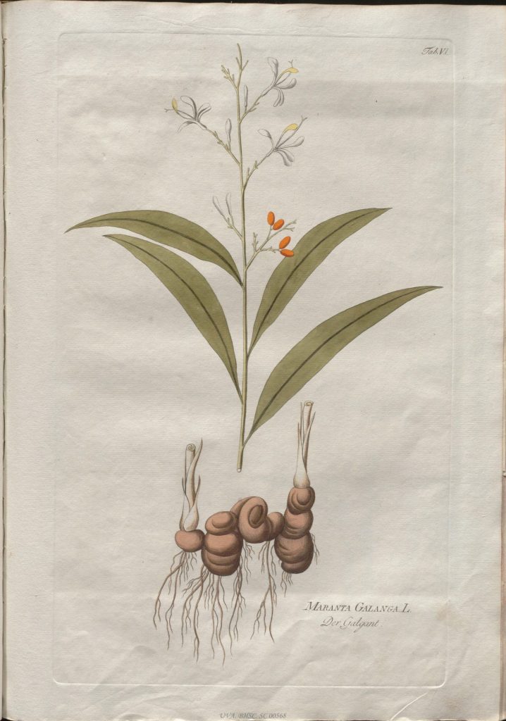 VIRTUS: “Estomacal, ‘incidens’ (disuelve/‘corta’ el moco). Condimento menos cálido que la raíz de jengibre.” USUS: “En anorexia, singulto (hipo), vértigo, vómito de navegantes, cólico pituitoso.”