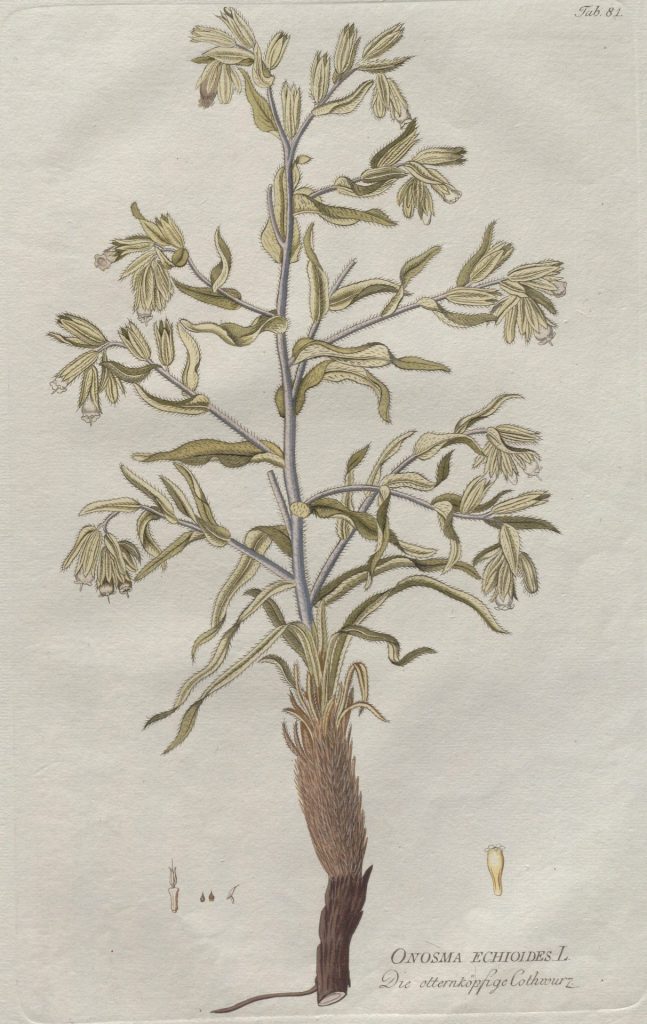 VIRTUS: “Tintórea (rubro‑tinctoria): capacidad para teñir de rojo.» USUS: «Para teñir medicamentos. Usada en sustitución de la alcanna.”