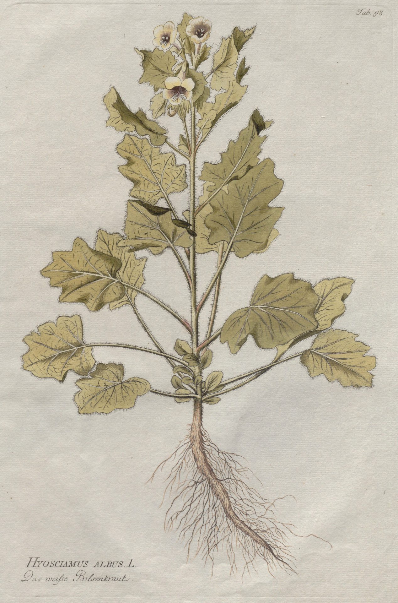 USUS: «En las primeras fases de la catarata, empleándose el extracto de la planta. En esta indicación, el autor considera que Hyoscyamus albus actúa más suavemente sobre los nervios oculares que las especies más potentes..”