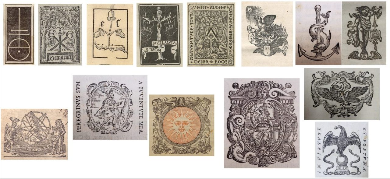Los ex-libris y marcas de impresor son otro aspecto relacionado con el estudio cultural, histórico y bibliográfico de la emblemática y para emblemática.